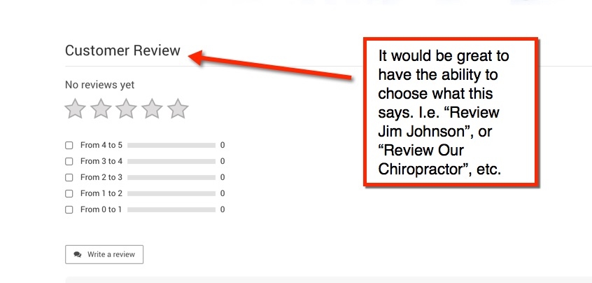 Hi! Just a thought / feature request. It would be nice to be able to customize the title on the reviews page (image attached). LOVE your product! Thank you!