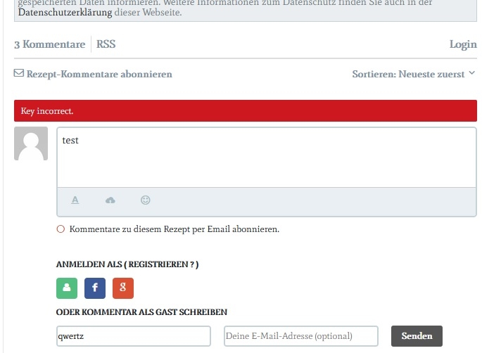 I have just upgraded JLexComment on my website and wanted to test a bit. I have managed to sent just one comment - now when trying to send any new comments I always get an error message above the comment form "Key incorrect."