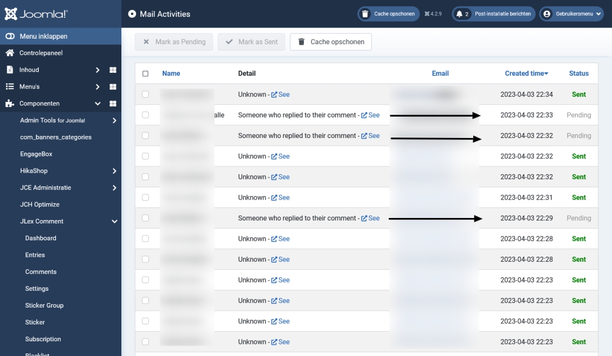 I didn't look for some time to the mail activities, but i did now. I believe not all emails are send. See attachment.