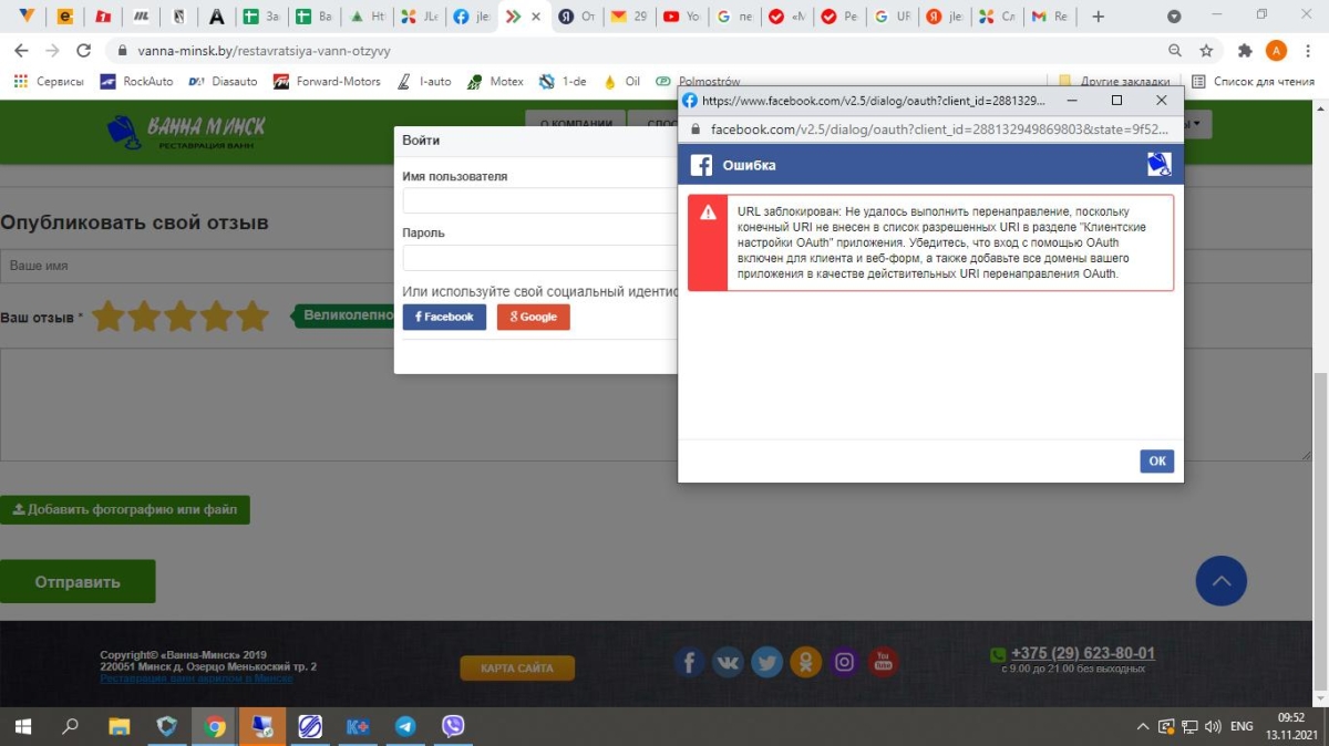 facebook (URL blocked: Failed to redirect because the final URI is not listed in the allowed URIs in the OAuth client settings section of the application. Make sure OAuth login is enabled for client and web forms, and add all domains for your application as valid OAuth redirect URIs.)