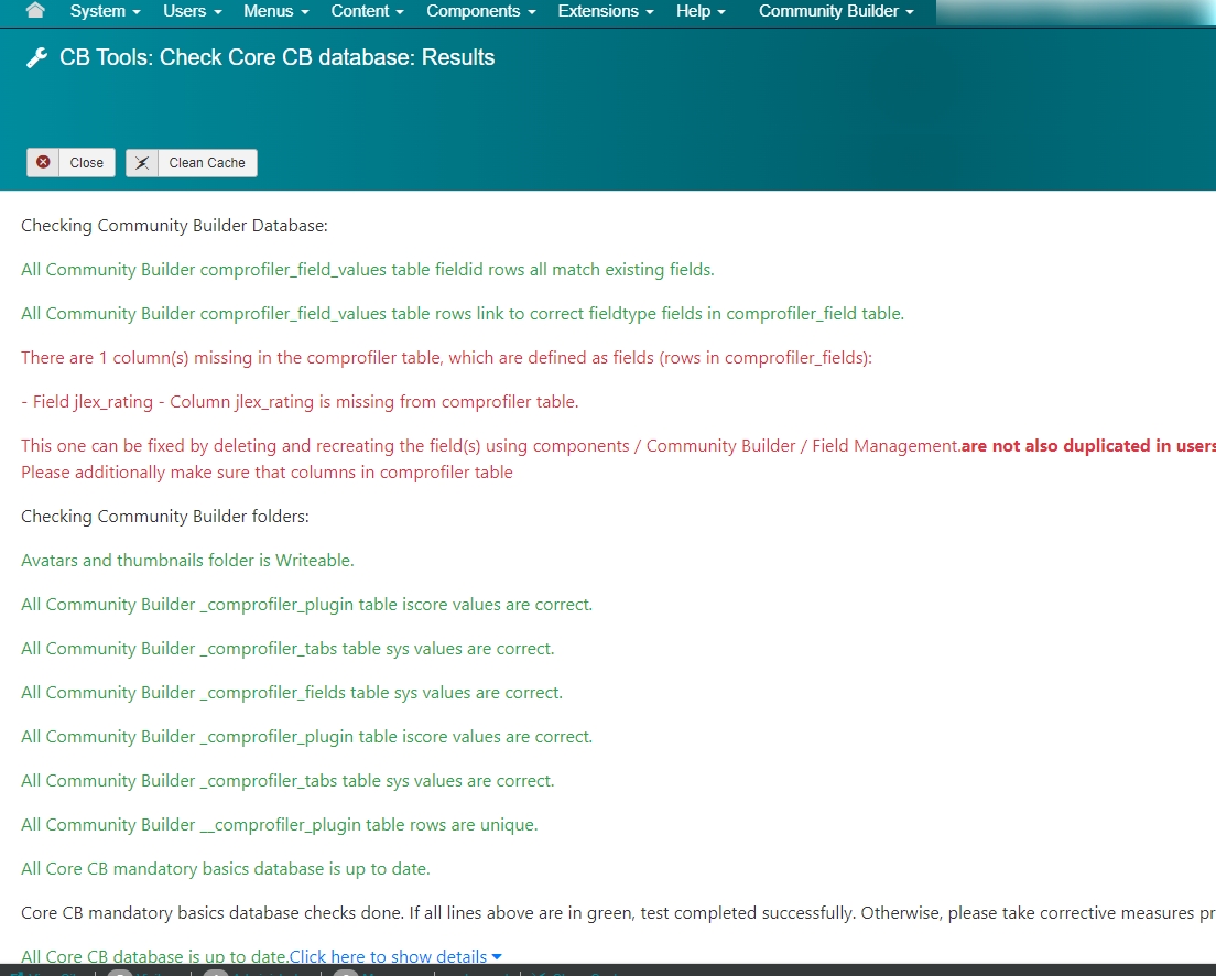 Hello, When using Community Builder: Tools and Check Community Builder Database. See attached image.