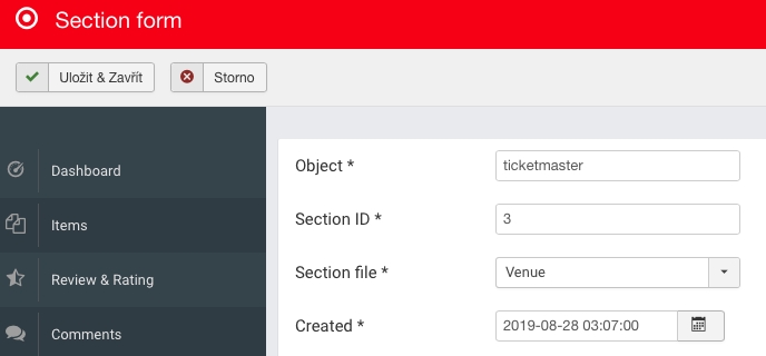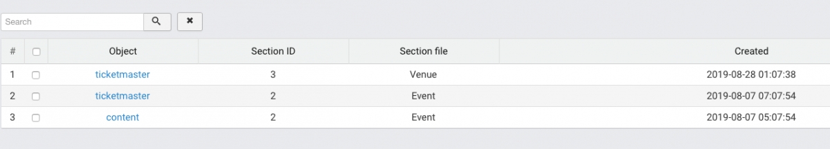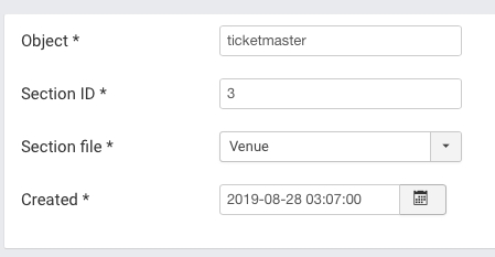 - create section Venue with object ticketmaster, ID I put any integer (3) and connect to section file venue