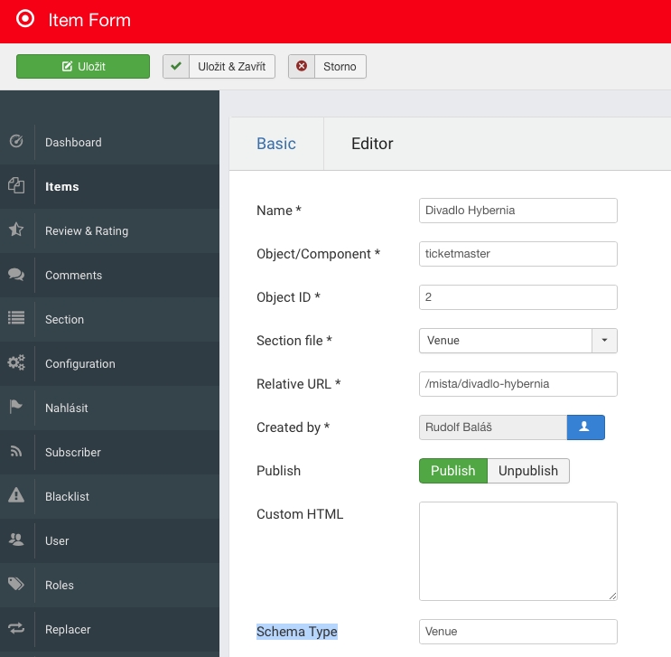 3. I use custom integration and for first option (Event) is ok, but now I can't create item for Venue