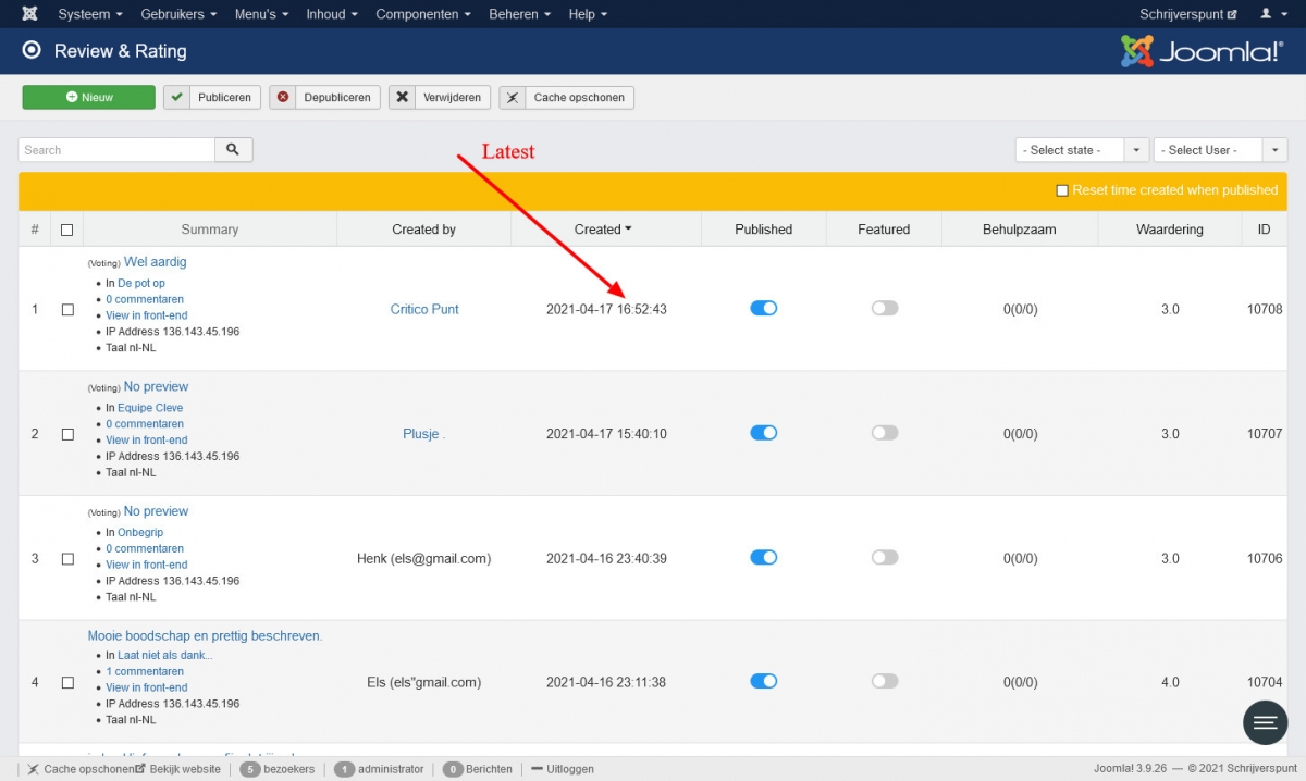 The latest reviews are not longer showing in the backend dashboard. The module for latest reviews got the same problem.
