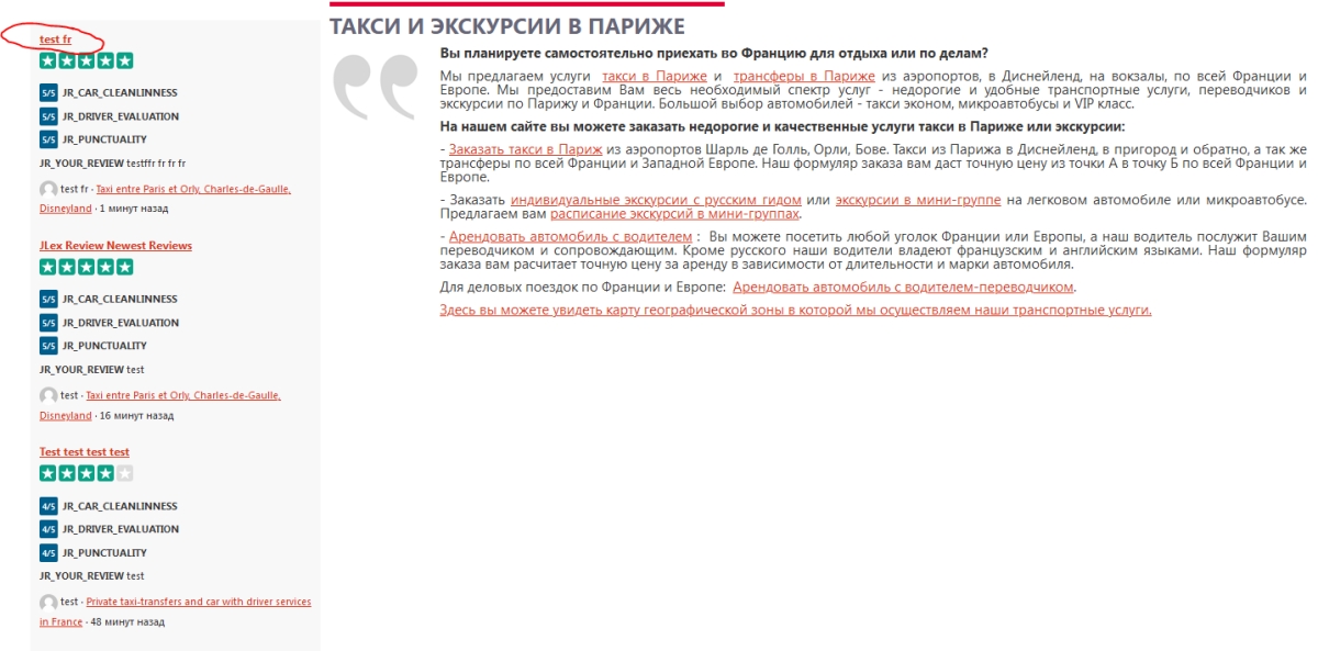 If you publish a review on the French side of the site, it should publish the last review in the module of the French side of the site.
