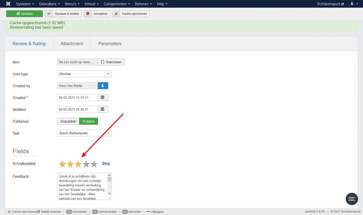 If you look in the backend, however, you will only see 3 stars (the default) indicated for the relevant review. See also the attachment