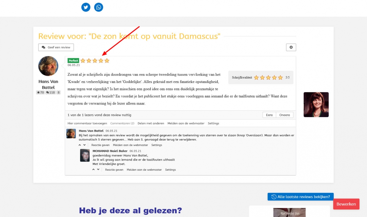 If visitors do not use the option to give a rating (skip), a number of stars will appear after saving, namely 5.