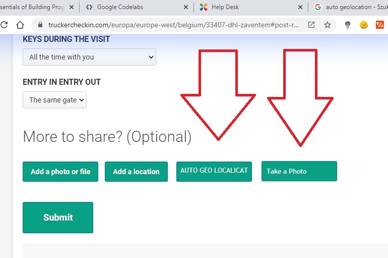How i can add button "auto geolocation" and "take picture" next to it ?