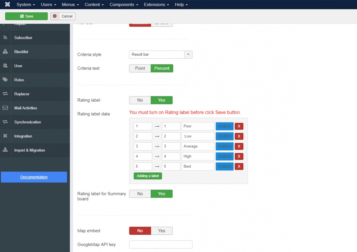 Trying to add labels to ratings, and the button will not save.