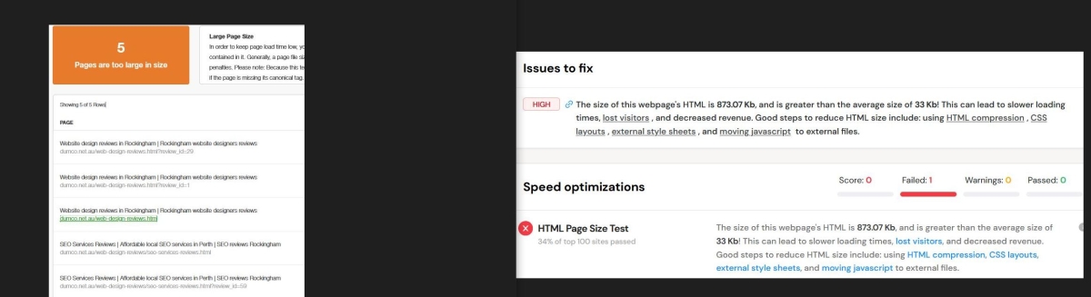 The pages I have assigned reviews - have no banners, graphics etc yet the size of these pages after auditing for SEO ......show up really big.