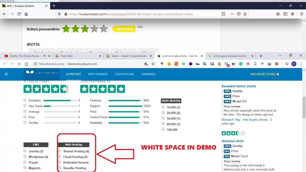 Thank You for quick fix my account issue. I have a new issue with the WHITE SPACE BETWEEN word in the review section. I spot on Your demo site that (please check screenshot 3 attached) that it is possible to make white space but when I try to do it on my site there is an error. So when I make underscore its fine. SO at the moment on my website, I have an underscore between word so it works but doesn't look too impressive. Please let me know what I doing wrong, is it some global setting problem?